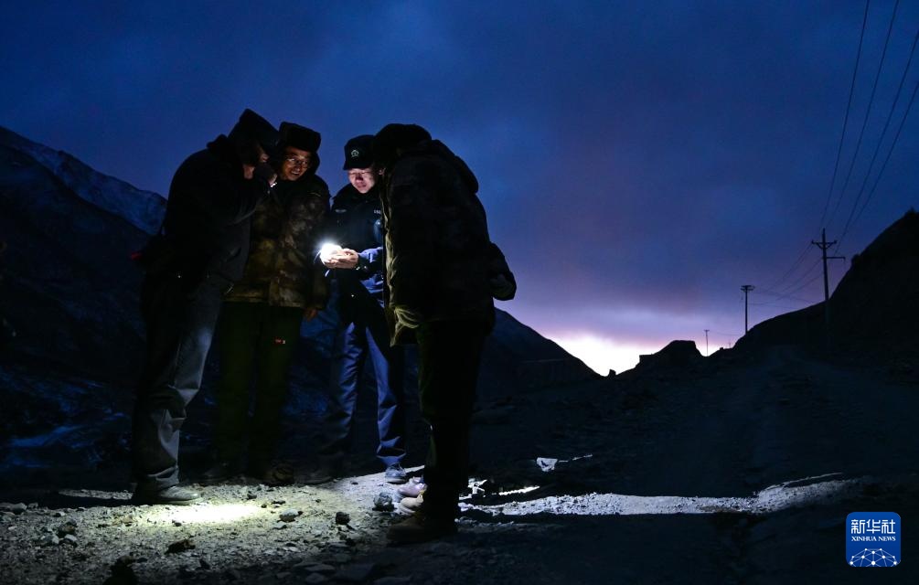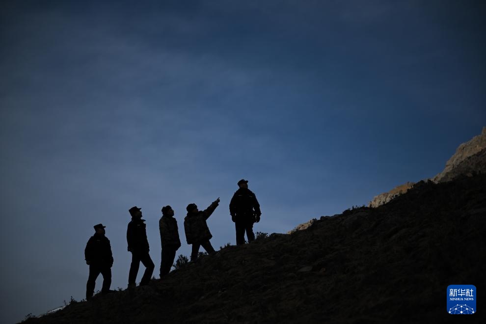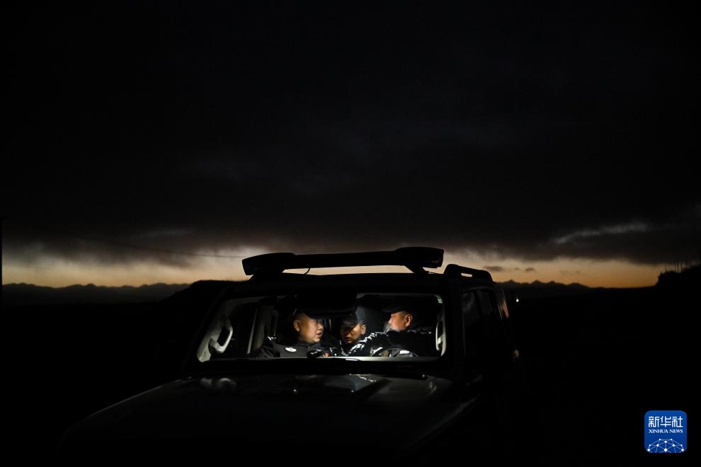 1月8日晚,在青海省海北藏族自治州门源回族自治县境内的老虎沟,民警在巡护途中歇息。