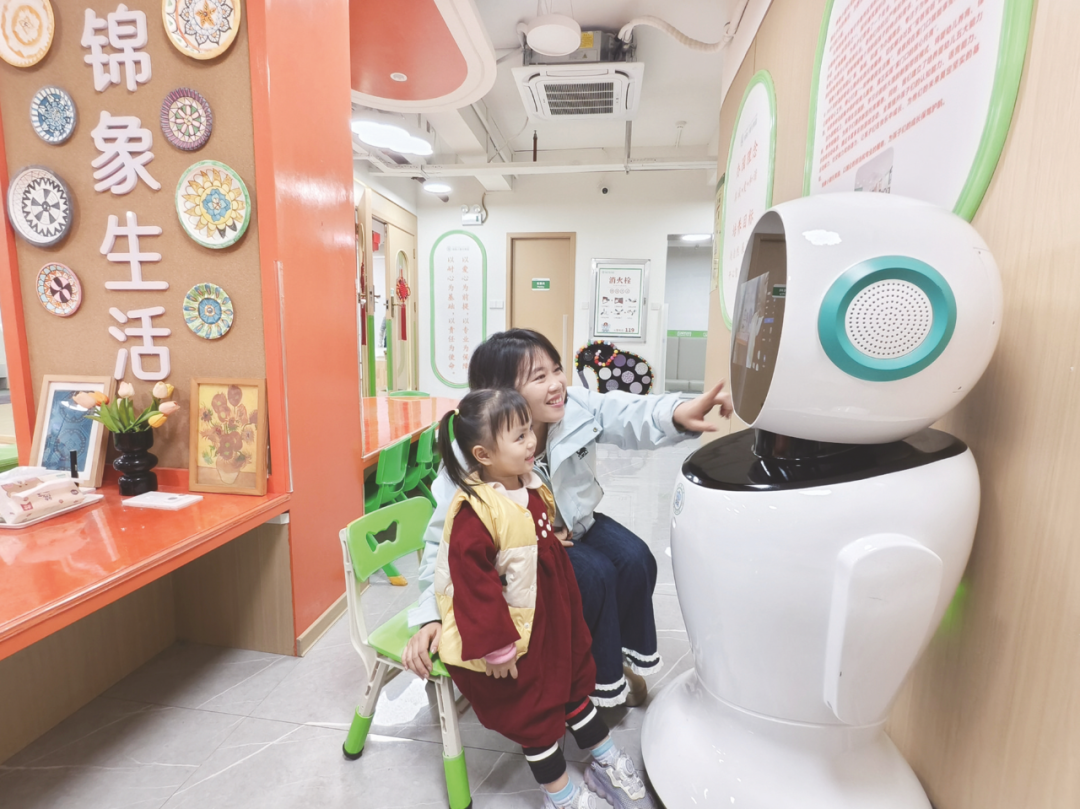 “小老鼠,上灯台,偷油吃,下不来……”近来,在坐落青秀区银杉社区江宇都会明珠小区的锦象小爱托育园内,洪亮的童声随同早教机器人的音乐响起,孩子们在教师带领下做手指操,小脸上满是专心。